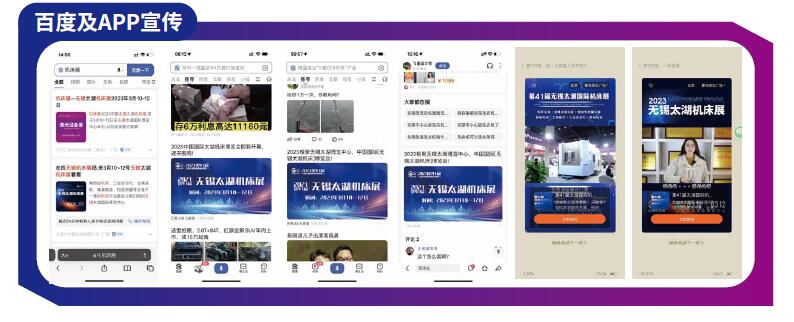 目前,线上的推广主要通过关键词(无锡机床展、太湖机床展等)、分类、兴趣等多个维度在百度新闻、360、微信朋友圈、抖音、今日头条、搜狐、网易、腾讯等手机客户端进行搜素,推广针对性强,带来更多专业观众流量。官方网站及时更新展会内容,帮助观众在线快速获取展商及展品信息:搜索微信公众号,“大湖机床展”,观众可在线了解展会最新动态,同时,主办方通过邮件群发系统、电话邀请小组全天轰炸式邀请专业观众到会参观,利用新媒体等多种营销手段大面积集中式撒网宣传。