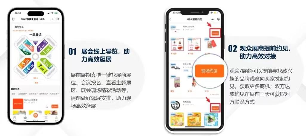 展前一个月上线CBME线上会场,呈现完整细分品类及品牌详情,买家可提前通过CBME云采宝查展商、找产品、约见展商,查询现场精彩活动等,提前规划观展行程,助力轻松高效逛展。