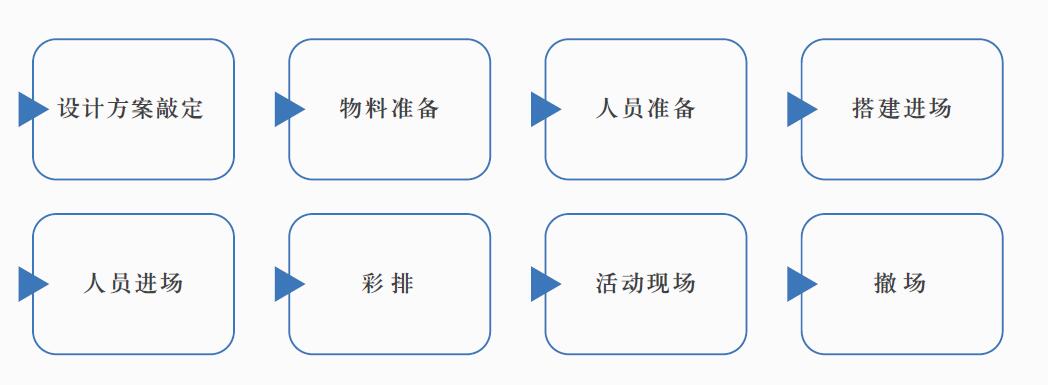 会务活动策划、会场布置搭建、内容流程安排、演出表演节目、会务服务人员、嘉宾/媒体邀约。